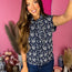 Elevate your wardrobe with the High Estates Navy Top. This stunning cap sleeve button up top features a charming floral print and delicate ruffled detailing, adding a touch of femininity to your look. Made of 100% cotton, it is lightweight and non-sheer, ensuring both comfort and style. Dress it up or down, this versatile top is perfect for any occasion.