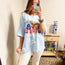 Celebrate your love for country with our USA Bear Blue Lace Bow T-Shirt! Made with soft cotton and featuring a round neck and drop shoulder sleeves, this shirt is perfect for any patriotic occasion. The USA graphic and bear design are accented by delicate lace bows, giving it a perfect mix of fun and feminine. Available in a roomy fit, so you can show off your style with comfort.
