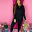 Amber is wearing a small in the top and bottom. Amber is 5'5, 135 - 140 lbs, and wears a 7 in our risen denim.