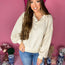 The Cream Ariana Top is a cozy oversized half-button down waffle knit shirt designed for comfort and style. Featuring a mock neck and long balloon sleeves, it offers a relaxed yet polished look perfect for casual days. Its soft knit fabric keeps you warm while allowing easy movement, making it an ideal layering piece for cooler weather.